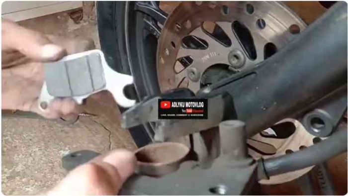 Setelah kaliper dilepas, kamu akan melihat dua buah kampas rem yang menjepit piringan cakram di kanan dan kiri. Kampas ini biasanya bisa dilepas dengan tangan atau bantuan obeng minus. Periksa kondisinya jika lapisan geseknya sudah tipis atau terlihat tidak rata, sudah jelas harus diganti.